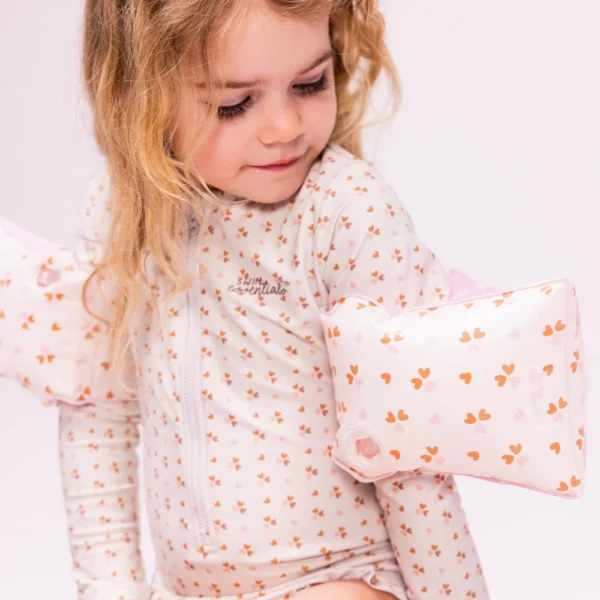 Adorable multicolored arm bands featuring cozy hearts, designed for little ones aged 0 to 2 years. These charming floaties provide safety and fun, making water play a delightful experience for your tiny adventurer!