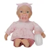 Meet baby Lily. Give her a hug and take care of her. Sweet Lily is an adorable and lifelike doll with a soft and cuddly body and will instantly capture your heart. You can change her clothes, help her fall asleep, and soothe her with the pacifier. If she’s hungry, give her the bottle with milk. Children love to mimic everything their parents do, and this baby doll will inspire your little one to play the nurturing role. Lily wears a headband and a long-sleeved dress in the Rosy Meadows design, with ribbed pants underneath. Changing her clothes promotes fine motor skills, and the pacifier and milk bottle add an interactive element to play.
