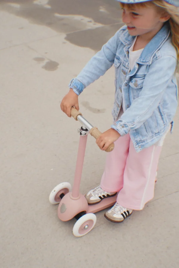 The Banwood Eco Scooter is made entirely from 100% post-consumer recycled plastic. This eco-friendly material is sourced through certified waste disposal partners and repurposed from discarded items like bottles, bags, cups, and fishing nets. Designed to grow with your child, the scooter not only promotes balance and coordination but also reflects our commitment to reducing environmental impact through thoughtful design.