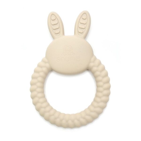 The Snufie Silicone Teething Ring is a cute and versatile toy for your little one. Made from soft, flexible silicone in a neutral sand color, this teething ring not only provides relief for sore gums, but also endless fun.