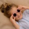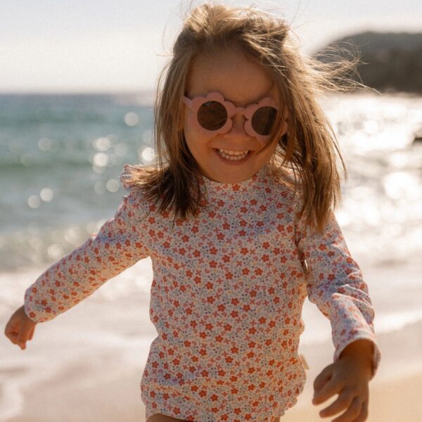Let the sun shine. These pink flower-shaped sunglasses are perfect for little dreamers with a love for flowers. The playful design provides a cheerful look while simultaneously protecting the eyes with UV400 lenses. Wear them with your favorite summer dress or swimsuit for an extra cute look.