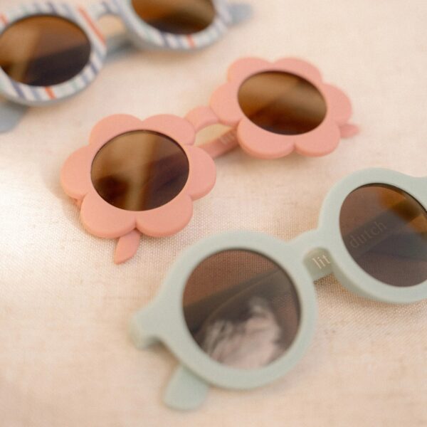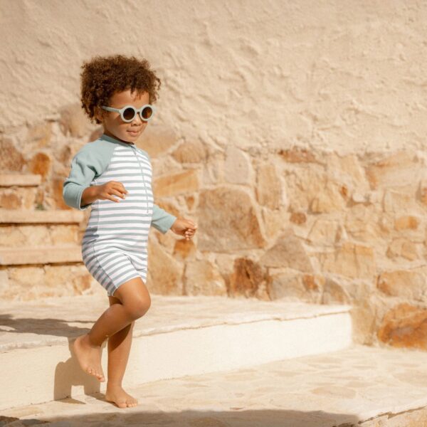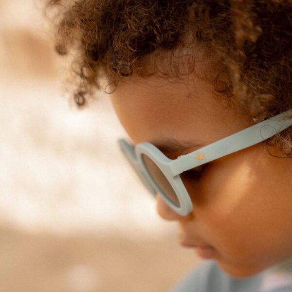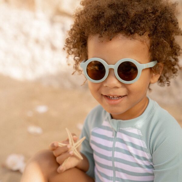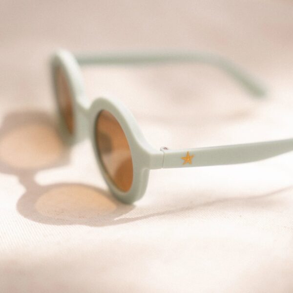 This pair of sunglasses in the soft color Sea Green brings calmness and freshness on sunny days. The round model gives a playful look and turns every adventure into a stylish moment. Thanks to the UV400 protection, the eyes are well protected, whether you’re at the beach or on your way to a summer picnic.