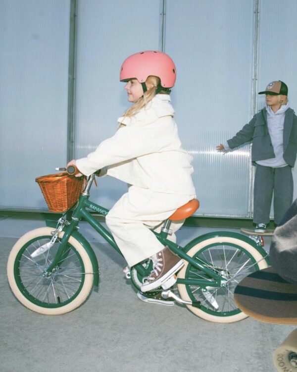 Inspired by vintage bicycles for adults and influenced by Scandinavian design, the Banwood Classic features a lightweight alloy frame in green finish. Your young rider will stand out as the coolest kid with a stylish brown faux leather seat, coordinated rubber grips, a one-of-a-kind rosewood pedal, cream 16” tires, and a handy detachable rattan basket. Ideal for bringing along snacks, a water bottle, and their favorite toy, ensuring a day full of fun!