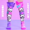 Step into the world of Sanrio with one sock featuring Kuromi and the other My Melody – each topped with their signature 3D plush ears for extra cuteness.✨ Designed with love for Sanrio fans who just can’t pick a favourite!