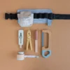 Strap on your tool belt and put your tools to use! There are so many things to build and fix in the house. With your own tape measure, pliers, box cutter, file and coping saw you have all the essential tools you need for little construction projects. Toddlers love to copy their parents and mimic everything they do. This adjustable pretend play tool belt inspires creativity and motor skills and allows children to channel into their inner constructor and let their imagination run free. A great set with 5 tools to play the part. Pair with the workbench and toolbox to extend the range of tools and give your little one a dedicated workspace.