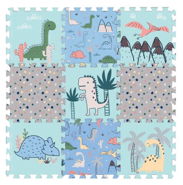 The cute Dinos Foam Floor is the perfect place for children to play and explore. With its colorful dinosaurs and soft foam surface, it creates an exciting environment where imagination can run wild. Children can jump, crawl, and play on this foam floor while discovering the different dinosaur species and creating their own adventures. With the Dino Foam Floor, playtime is never dull, and it quickly becomes a favorite spot for little adventurers to explore and have fun. Compliant with EU standards and specific regulations.