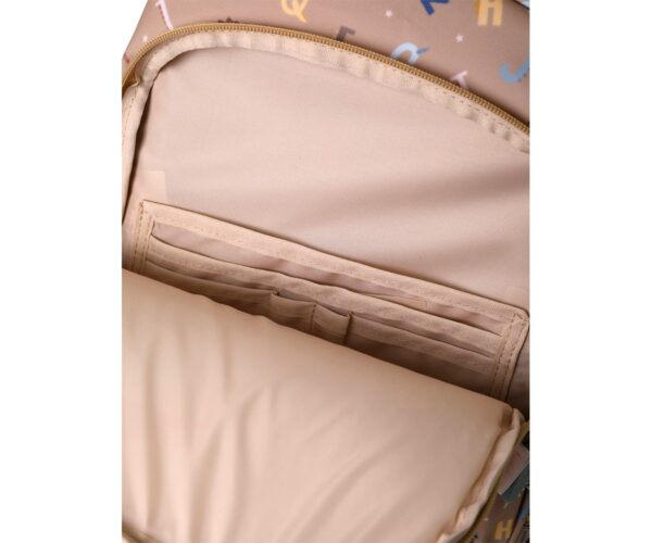 - A front pocket that almost reaches the height of the backpack, with multiple interior dividers to store pencils, cutlery, and small items, for children to keep at hand