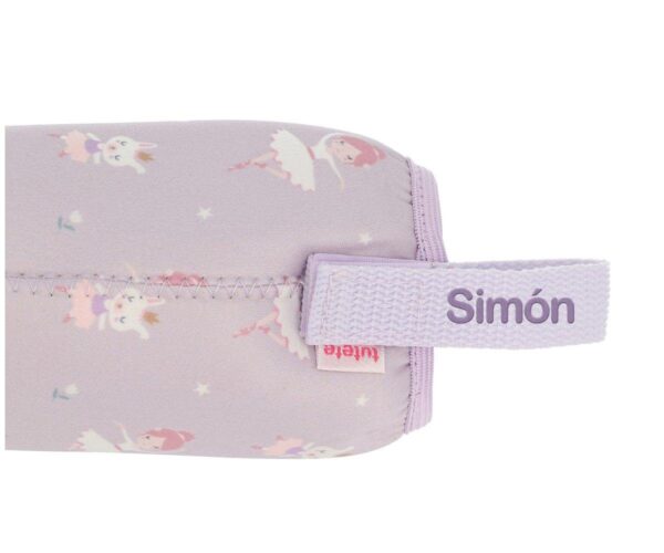 Neoprene sleeve to protect the steel bottle decorated with characters from the new collections of the Back to School Tutete 2025.