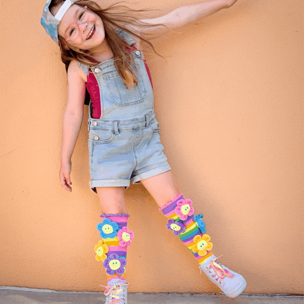 Step into spring with our colourful flower fun socks featuring custom-made plush flowers!