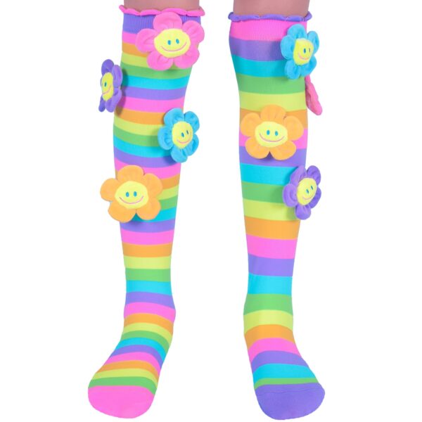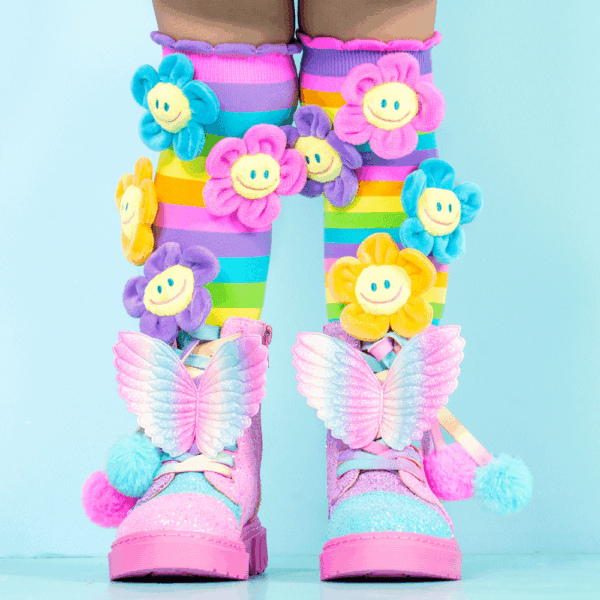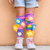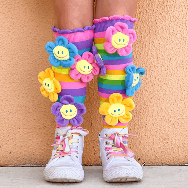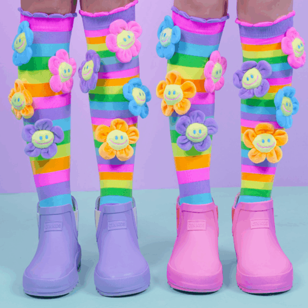 Step into spring with our colourful flower fun socks featuring custom-made plush flowers!
