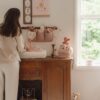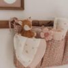 Keep all your baby’s essential items within reach with this practical organizer. Made from quilted 100% cotton with three spacious pockets. You can easily store pacifiers, wipes, bibs, diapers, cloths, toys, and more in it – everything you need to care for your little one. Simply attach it to the playpen, changing table, or wall with the cords. The Fairy Floral design with a pink background covered with beautiful flowers.