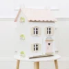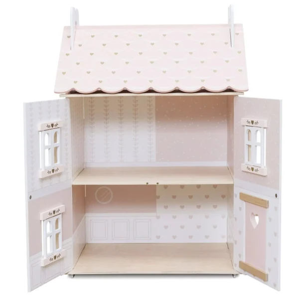 An adorable dollhouse in fresh white and pink tones with gold heart motifs. Windows and doors can be opened.