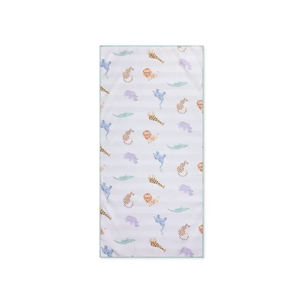 The Beach towel features two sides, allowing you to choose which style suits you best. One side boasts a striking Safari print, perfect for animal lovers, while the other side showcases fresh orange and white stripes for a classic, summery look.