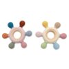 This is a versatile teething ring that combines both soft and hard materials. The ring is made of high-quality silicone and wood, which provides a unique texture and experience for your baby. The different shapes and patterns stimulate sensory development and help with teething. The vibrant colors and attractive designs make this teething ring an enjoyable toy for your little one. This teething ring is safe, BPA-free and free of harmful substances, so you can bite with peace of mind.