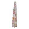 Stack one block on top of the other and watch the magic of Fairy Garden grow! You can stack the blocks to make a tall tower or lay them horizontally on the ground. Discover four enchanting scenes as you build. Create a lush flower branch inhabited by the most beautiful forest creatures. Sort them in two ways by counting, or collect all the images from the magical garden. Children learn to count to 10 through play with these stacking blocks. The blocks feature beautiful illustrations from the Fairy Garden collection, including deer, bunnies, hedgehogs, fairies, ladybugs, and cheerful flowers. To store them easily, the smaller blocks fit into the larger ones. Made of sturdy cardboard, the blocks can withstand a bump. The smallest block measures 5 cm and the largest is 14 cm.