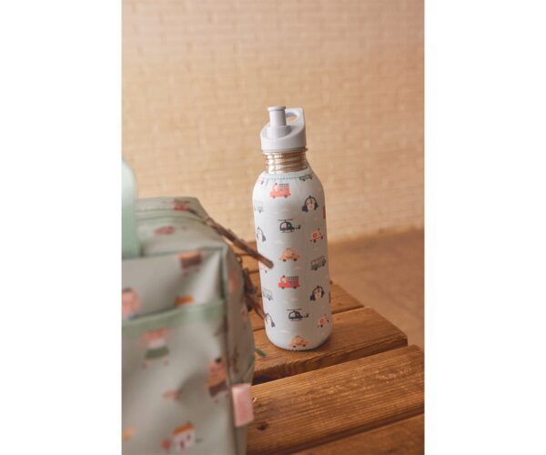 Children’s 750 ml Stainless Steel Bottle with Tutete City Cars Back to School Collection Neoprene Sleeve.