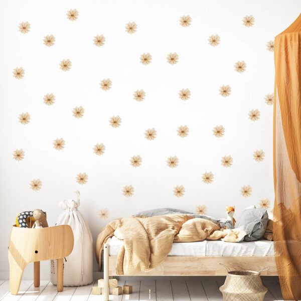 Set of wall stickers – daisies stickers can be arranged freely on the wall and create a wallpaper effect. They come in one shape and one size. Daisy stickers were created for all fans of delicate motifs and natural colors. Thanks to their unique form, they are perfect for both Scandinavian and boho styles.