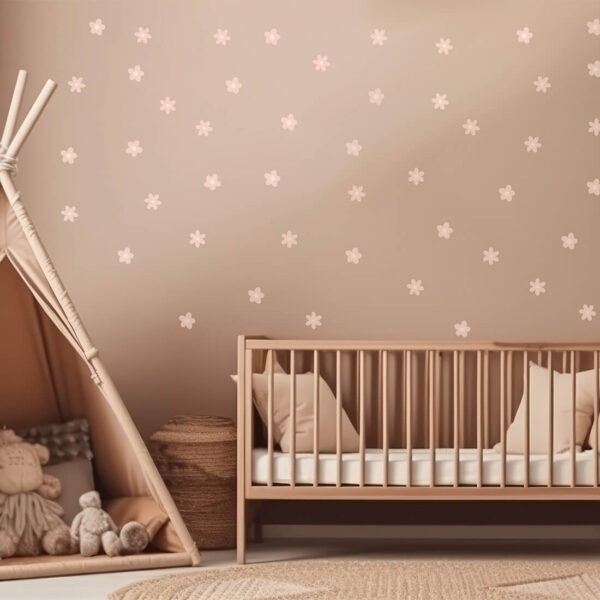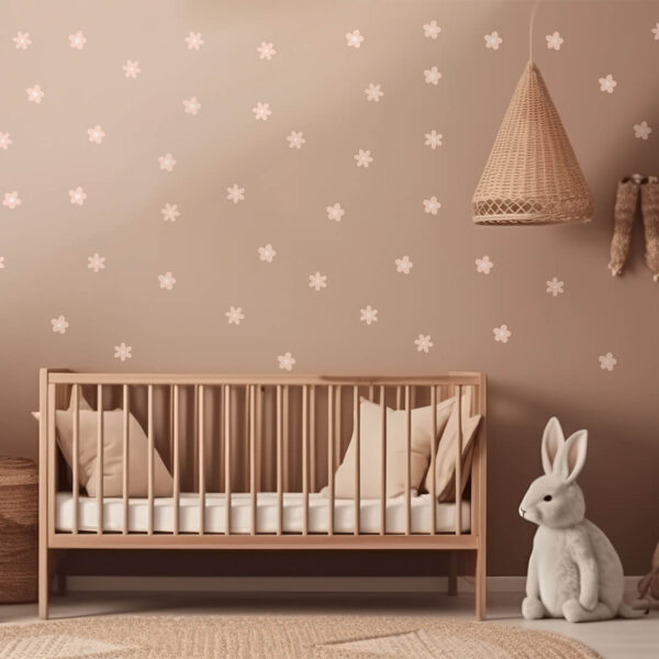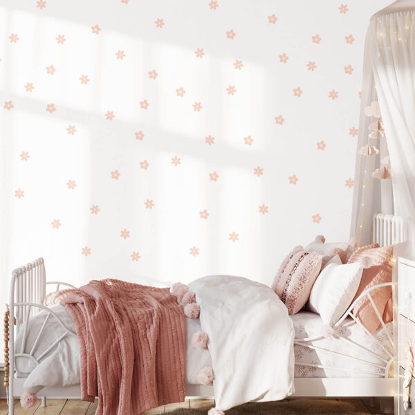 Set of wall stickers – daisies stickers can be arranged freely on the wall and create a wallpaper effect. They come in two shapes and two sizes. Daisy stickers were created for all fans of delicate motifs and natural colors. Thanks to their unique form, they are perfect for both Scandinavian and boho styles.