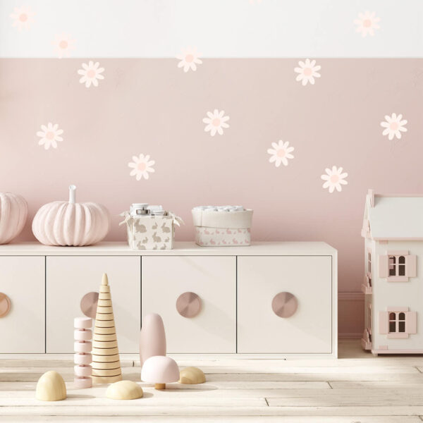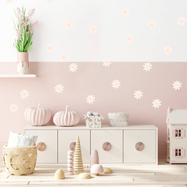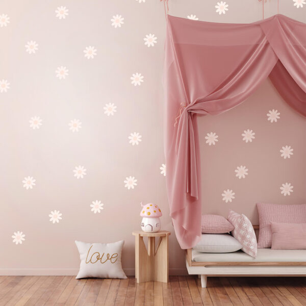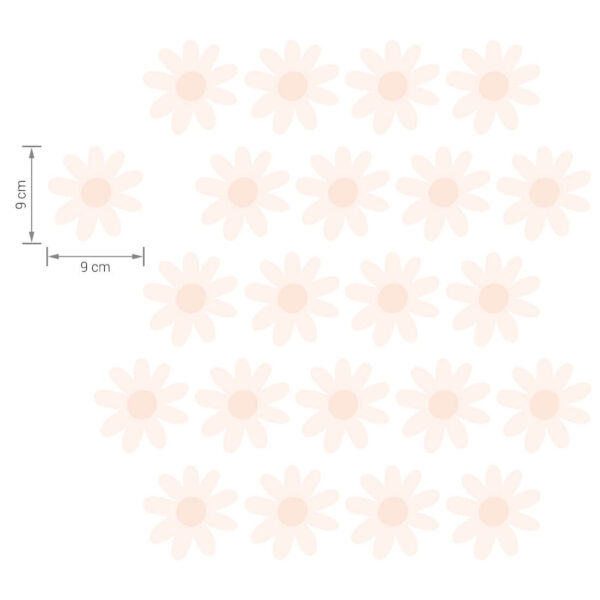 Set of wall stickers – daisies stickers can be arranged freely on the wall and create a wallpaper effect. They come in one shape and one size. Daisy stickers were created for all fans of delicate motifs and natural colors. Thanks to their unique form, they are perfect for both Scandinavian and boho styles.