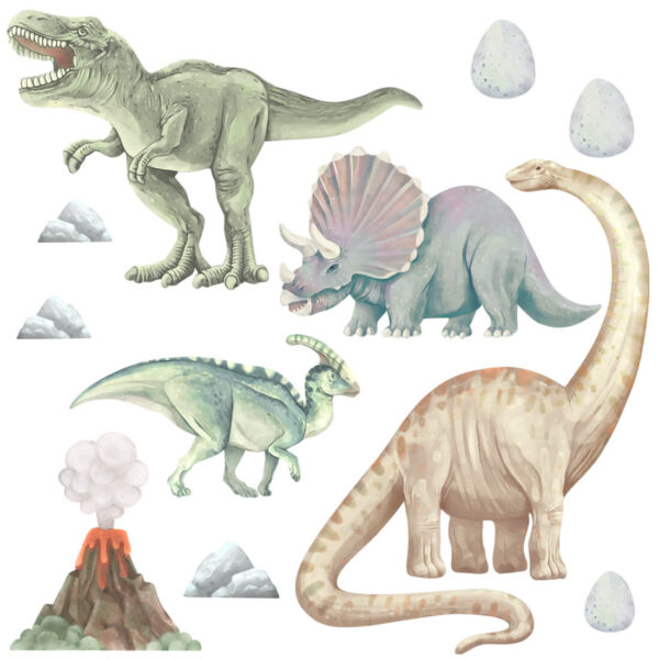The collection of dinosaurs wall stickers was created for lovers of prehistory. Ideally suited to the rooms of small explorers and lovers of big reptiles. The way it was designed was unique: in the first stage, hand sketches of the entire collection were created, and in the next stage, materials for printing were prepared using computer technology. All this makes the entire collection realistic and will turn a child’s room into an amazing world full of adventures from ancient times. The entire series has been designed to perfectly harmonize with each other and create a coherent composition.