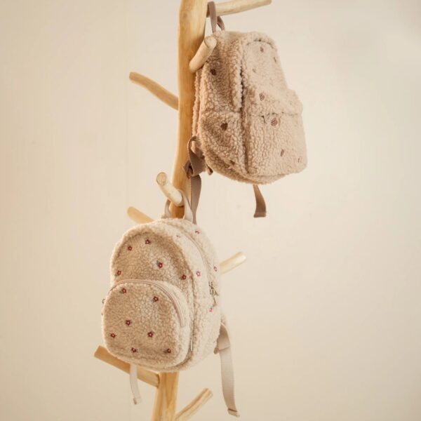Go on the road together with this soft teddy backpack in the color sand. Perfect for small adventurers to bring their things. This children’s backpack combines comfort and style, with adjustable straps and enough space for everything your little one needs. There are two elastic tires in the bag to keep drinking cups upright so that they do not leak. In addition, the bag has a label on which you can write down the name of your child. Ideal for every journey of discovery!