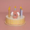 Hip hip hooray! Bring out the streamers, because with our cake every day is a party! Decorate your cake with a macaron, donut, rainbow, animals, and whipped cream and treat all the guests to a piece. Have fun at the party. The set consists of six pieces of cake on a platter, a cake server, donut, macaron, bird, butterfly, rainbow, candles, whipped cream dollops, and number toppers (1-5).